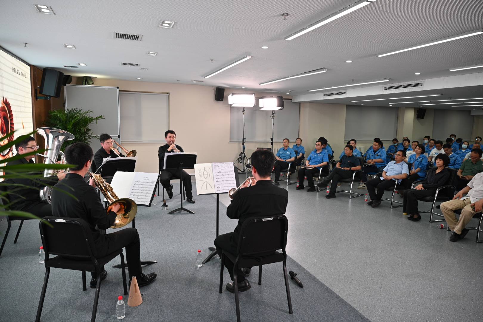 “五月音乐节”是国家大剧院倾力打造的室内乐演出品牌,旨在推动艺术家们走出剧院,与广大市民、职工共享音乐之美。在阿苏卫生活垃圾焚烧发电厂四层报告厅内,艺术家们以《小序曲》轻松开场,随后演奏了《你鼓舞了我》《奇异恩典》《我的祖国》等耳熟能详的中外名曲,奉献了一场非常精彩的演出,表达出了对“城市美容师”的敬意。现场环卫工人非常高兴能够近距离聆听高雅艺术,纷纷献上热烈的掌声。