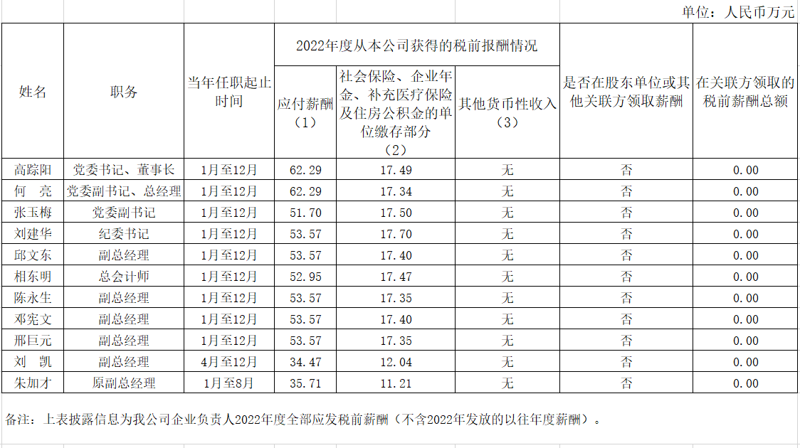KY开元电竞有限公司企业负责人2022年度薪酬情况