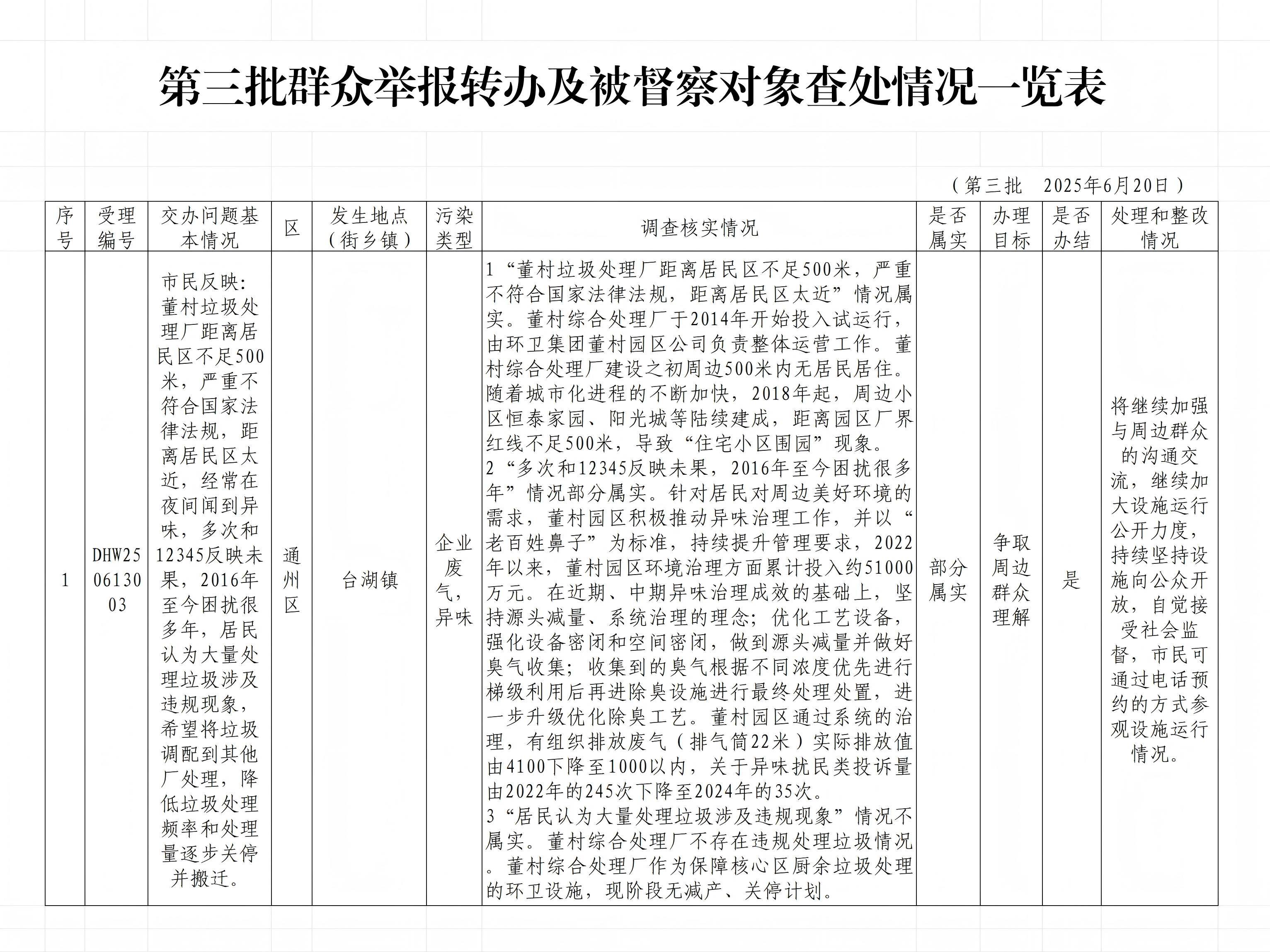 第三批群众举报转办及被督察对象查处情况一览表