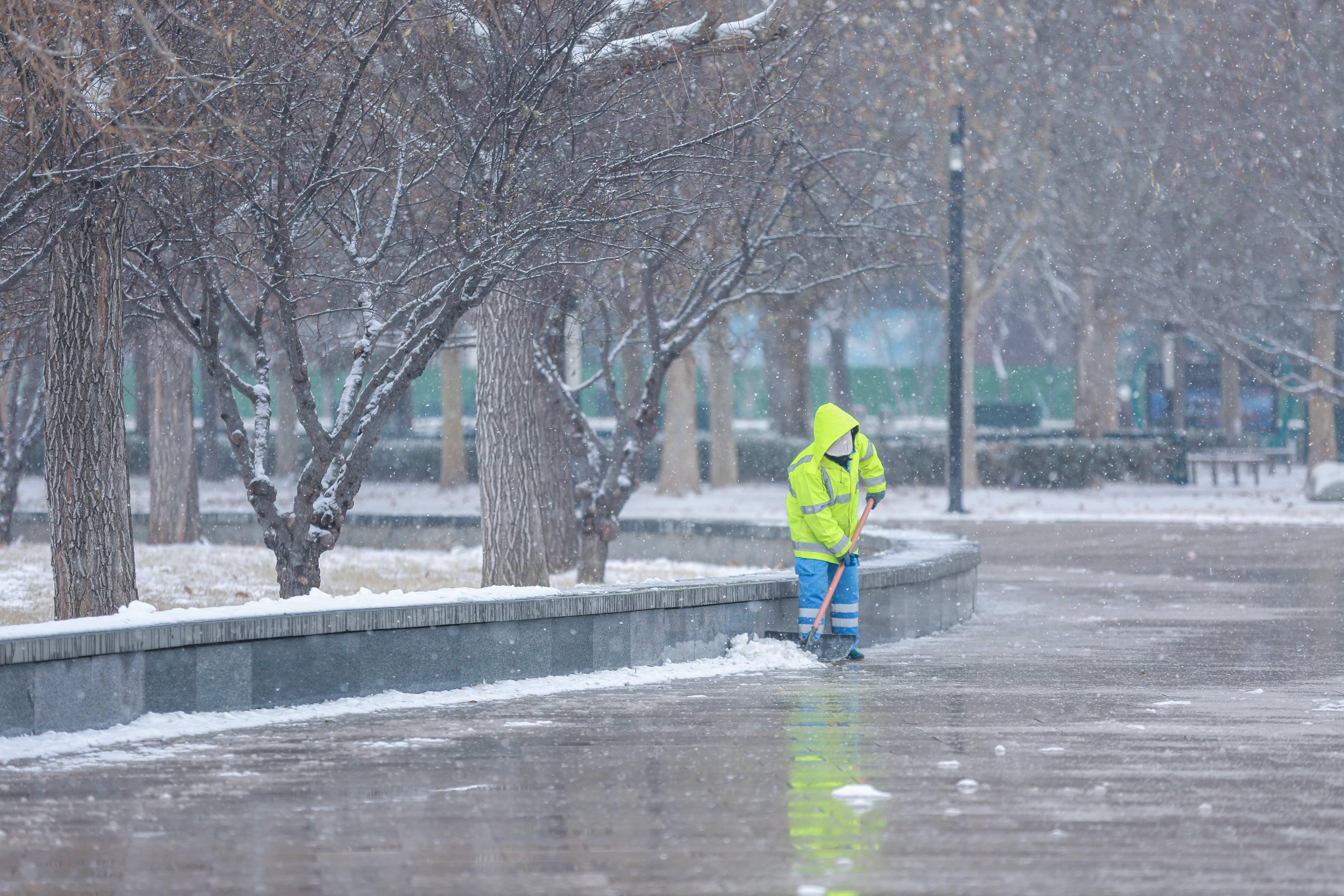 在通州区,通州KY开元公司城市清扫三中心人工清扫保洁四队副队长张秋的身影在雪地里来回奔波。“每一次极端天气对于我们来说都是一场硬仗。”张秋一边仔细观察着路面积雪,一边不断地挥动着手中的作业工具。