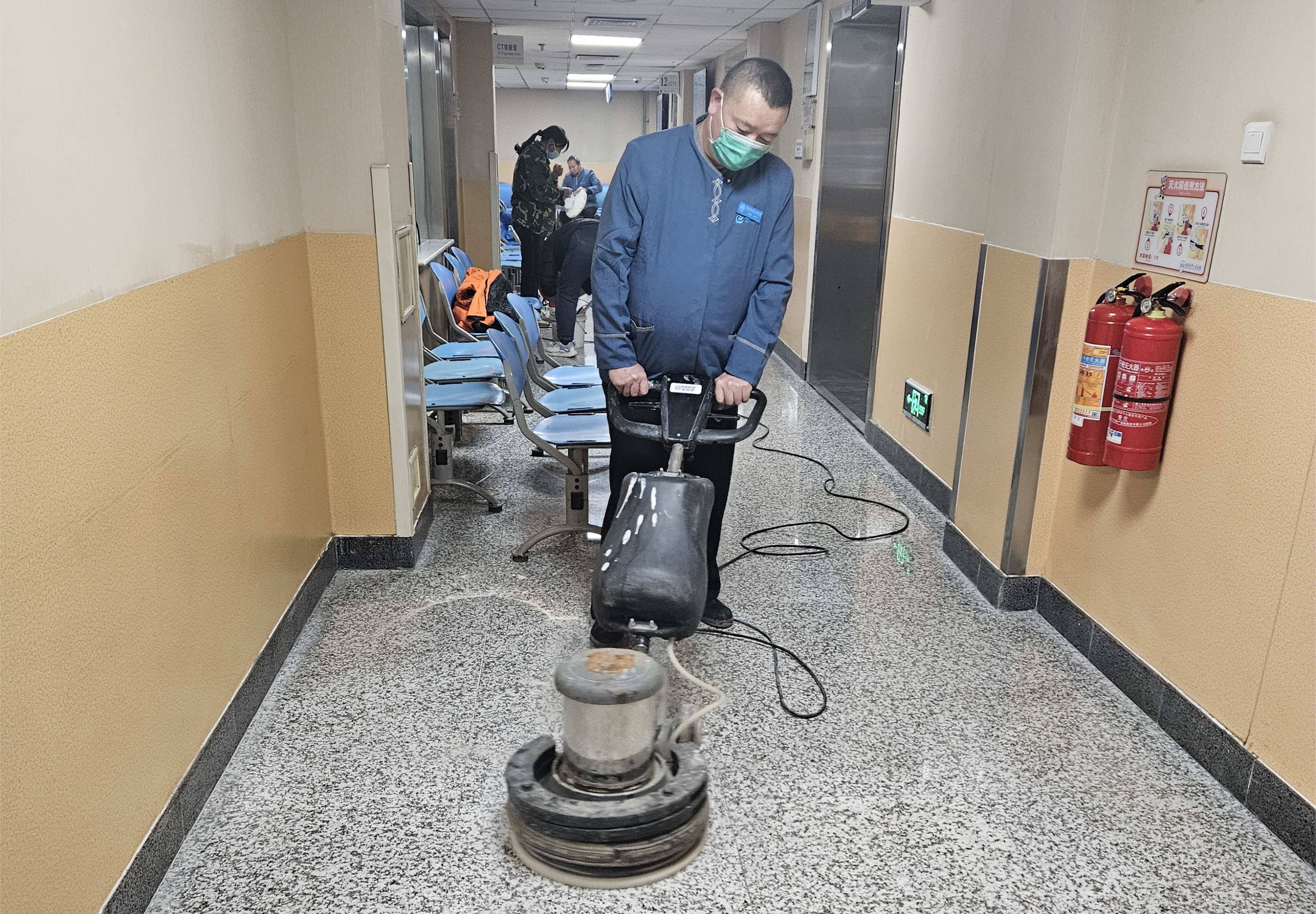 环服公司在不影响院方正常工作的前提下,有序开展地面及石材养护打蜡结晶专项服务。针对不同地面材质情况,制定针对性方案,严格按照工艺流程进行养护,投入280余人次,养护面积约2万平方米。