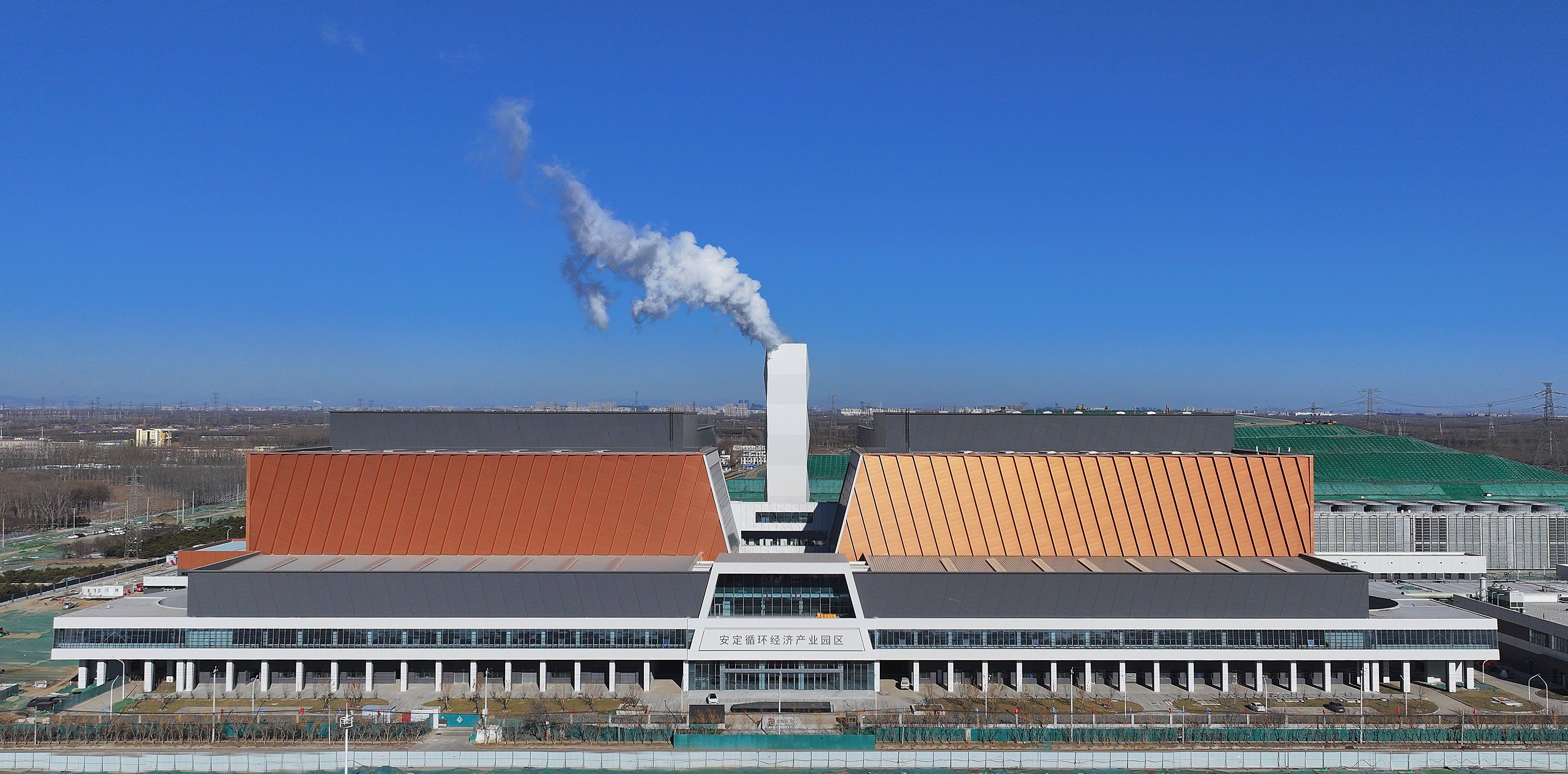 安定循环经济园区位于大兴区安定镇,占地面积33.75万平方米,总建筑面积约14.67万平方米。园区共七大板块,其中日处理能力为5100吨的生活垃圾焚烧发电厂是园区主要设施,配备6台850吨/日焚烧炉和3台45MW凝汽式汽轮发电机组。