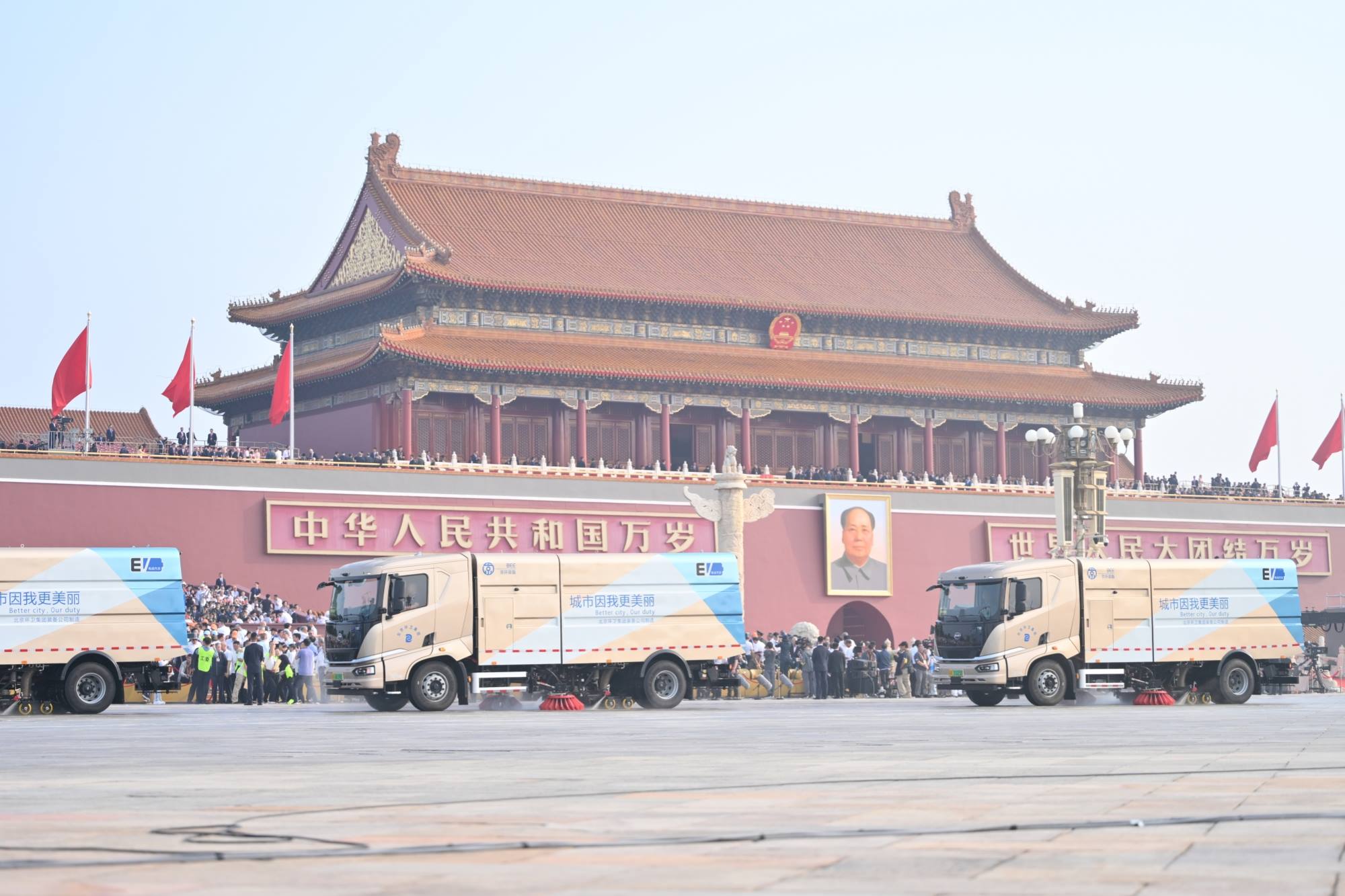 集团所属KY开元装备公司研发制造的第三代新能源洗扫车,在刚刚结束的纪念抗战胜利80周年大会上以“第零方阵”闪亮登场,人民日报、新华社、中国新闻社等众多主流媒体竞相报道。KY开元装备公司正在同步推出系列无人驾驶、氢能源环卫车辆产品。