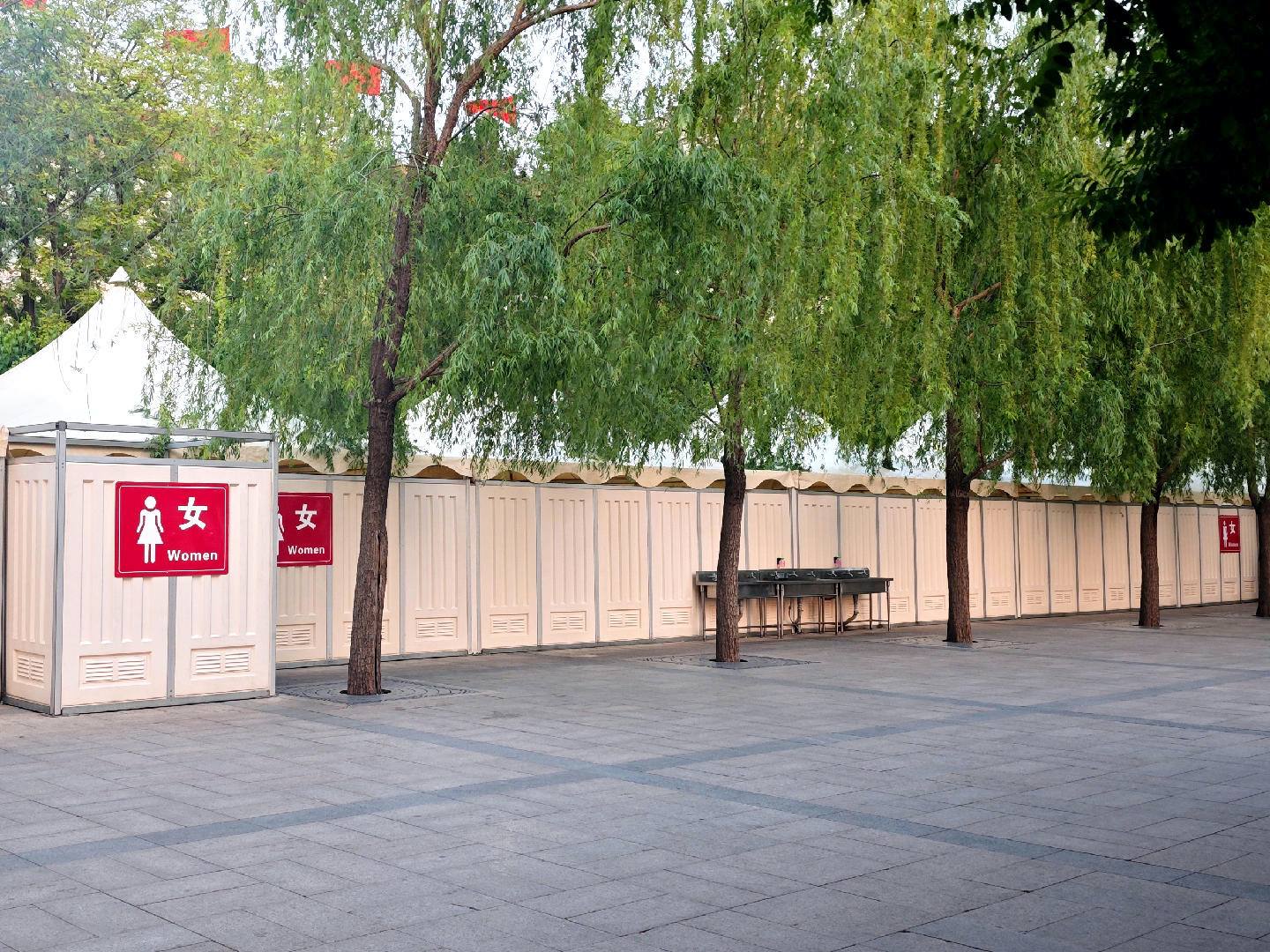 在人民大会堂东侧、国家博物馆西侧等人流密集的地方,设置厕位足、效率高的篷帐式厕所;像汽车一样的拖挂厕所放置在长安街沿线,如厕人员相对分散;单体厕所则安装在如厕人员相对较少的区域,三类厕所总计140座,提供3500多个厕位。